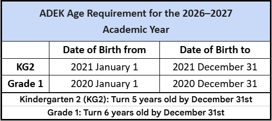 ADMISSION AGE GUIDE FOR KG AND GRADE 1 STUDENTS – RELEASED BY THE M.O.E Dec. 2025